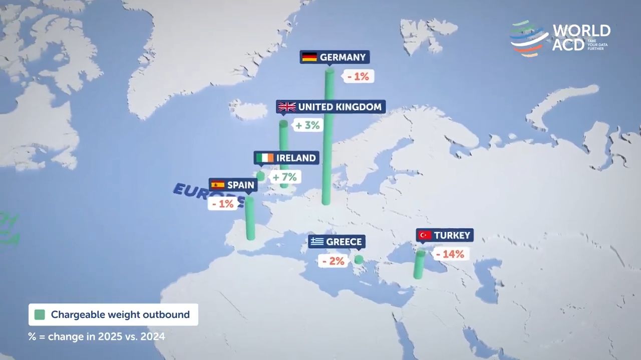 • Türkiye (-%14), Almanya (-%1) ve İspanya (-%1) gibi ülkelerde hava kargo çıkış tonajlarında düşüş yaşanmıştır.