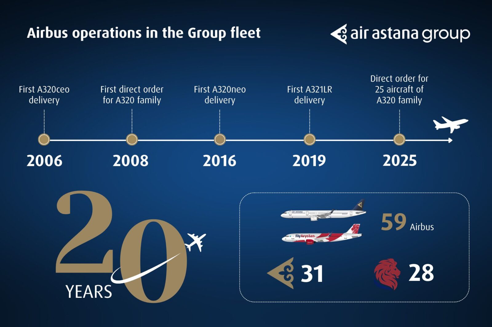 Air Astana, Airbus uçaklarıyla yaptığı operasyonların 20. yılını kutluyor