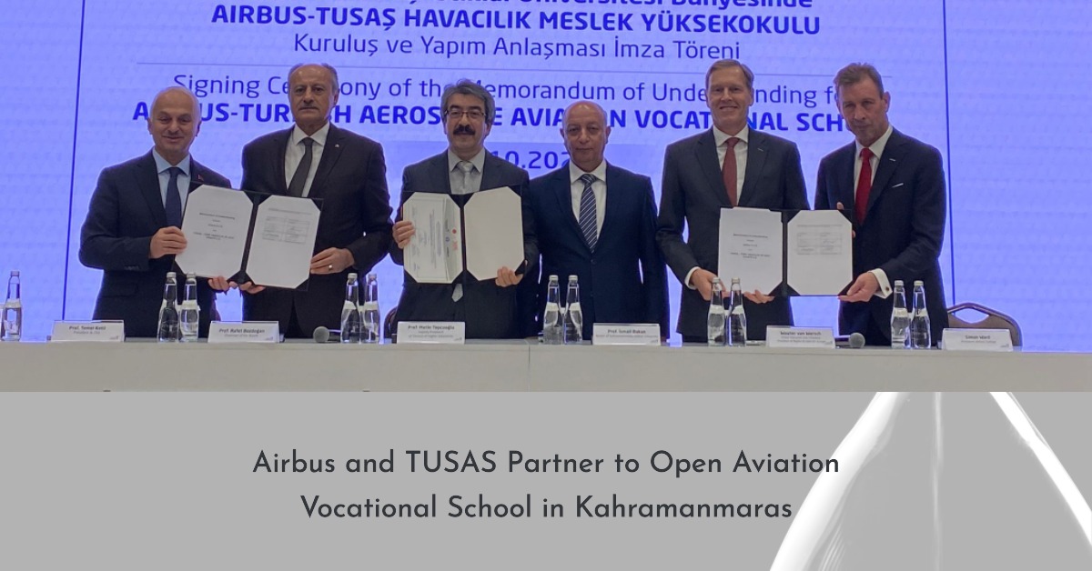 Havacılık sektöründe lider olan Airbus ile Dünya Havacılık ve teknoloji sektörünün önemli oyuncularından Türk Havacılık Uzay Sanayii (TUSAŞ), Kahramanmaraş’ta “Airbus – TUSAŞ Havacılık Meslek Yüksekokulu” açmak üzere mutabakat anlaşması imzalayarak iş birliklerini resmileştirdi.