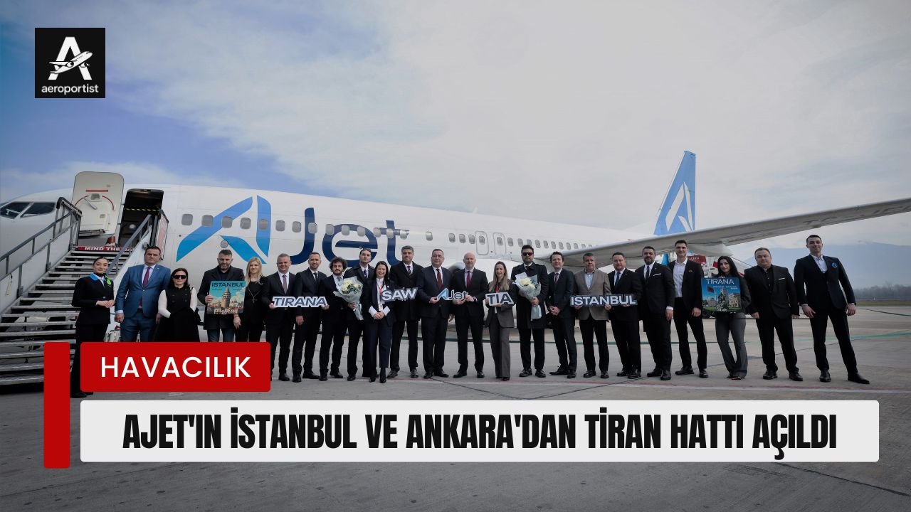 Başkent çıkışlı uçuş ağını genişleten AJet, Ankara’dan da Tiran’a sefer başlattı. Ankara Esenboğa Havalimanı’ndan Tiran Uluslararası Havalimanı’na ilk sefer 5 Mart 2026 tarihinde yapıldı. AJet’in Ankara-Tiran seferleri; perşembe ve cumartesi olmak üzere haftada 2 gün olacak.