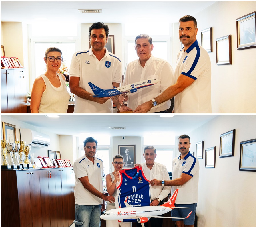 Corendon Airlines ve Anadolu Efes arasında yapılan iş birliğinin heyecanıyla önemli bir buluşma gerçekleşti. Anadolu Efes Genel Direktörü Alper Yılmaz ve sezon başında takımın başına geçen başarılı Başantrenör Erdem Can, Corendon Airlines Yönetim Kurulu Başkanı Yıldıray Karaer’i ziyaret etti.