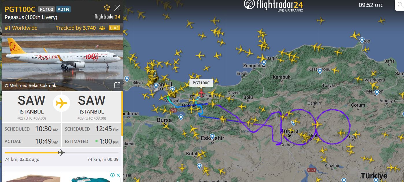 Flightradar üzerinden takip edilebilen uçak, uçuşu tamamlandığında Sabiha Gökçen Havalimanı’na dönecek.